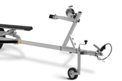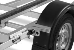 13 pin kontaktligzda + 7 pin adapteris Atbalsta ritenis 150 kg Karsti cinkots, metināts rāmis – S355 tērauds Paceļami aizmugurējie lukturi iebraucot ūdenī Praktiski pakāpieni – 4 gab. Regulējams vinčas statīvs un priekšgala stiprinājums Riteņi ar M+S riepām Vinča 800kg Ķīļa rūlīšiem ir regulējams augstums un pozīcija