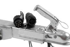 13 pin kontaktligzda + 7 pin adapteris Atbalsta ritenis 150 kg Karsti cinkots, metināts rāmis – S355 tērauds Paceļami aizmugurējie lukturi iebraucot ūdenī Pr…