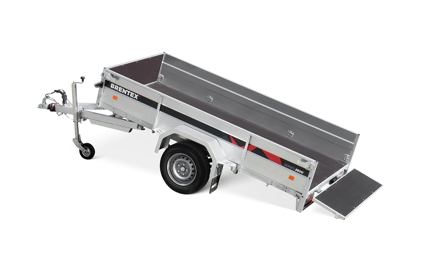 Piekabe BREN-2612-1P-1100 uz pilnībā cinkota, metināta rāmja ar bremzēm ir izgatavota no izturīga S355 konstrukciju tērauda.