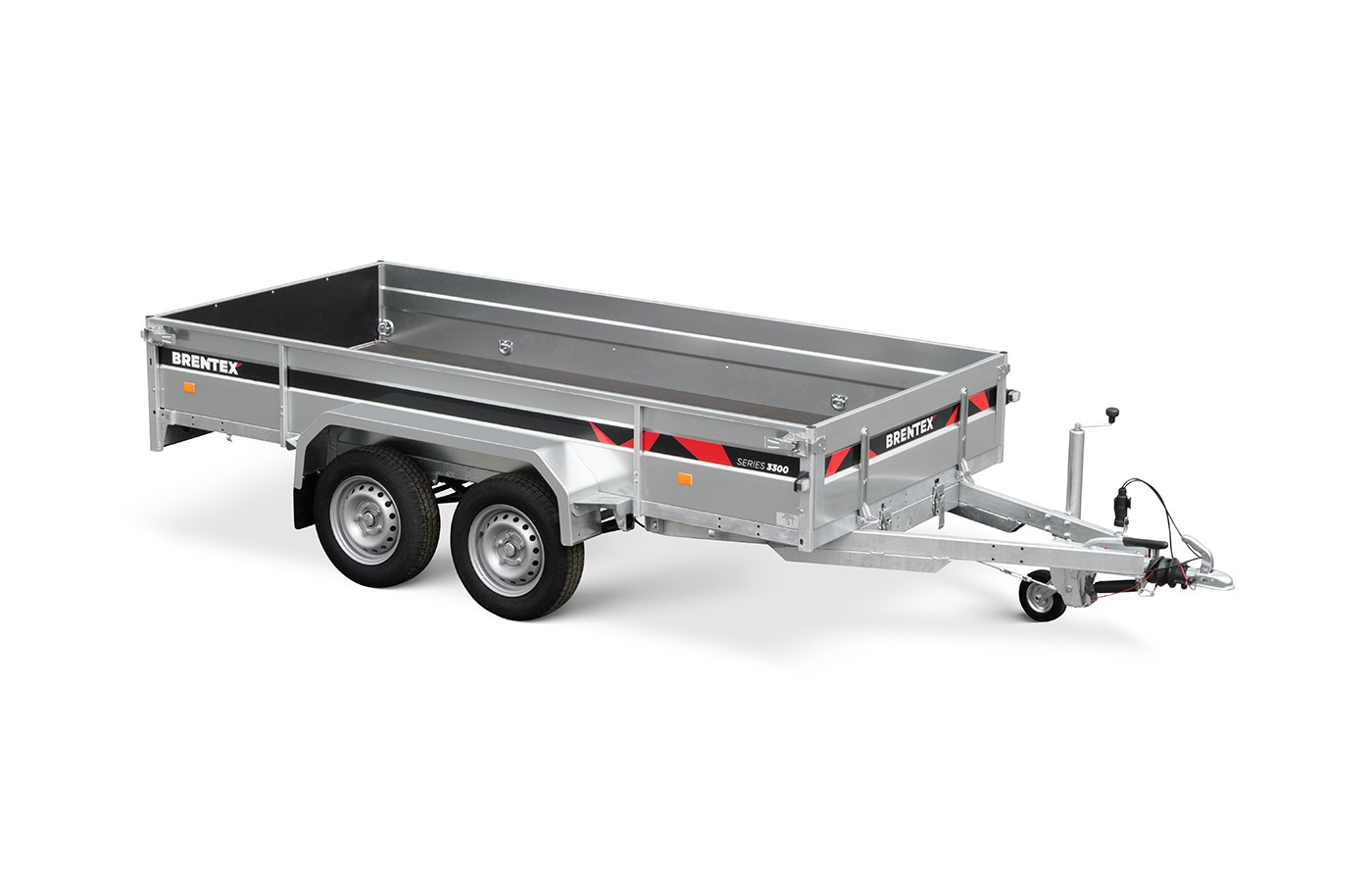 Piekabe ar bremzēm BREN-3315-2P-2300 uz pilnībā cinkota, metināta rāmja ar bremzēm ir izgatavota no izturīga S355 konstrukciju tērauda.