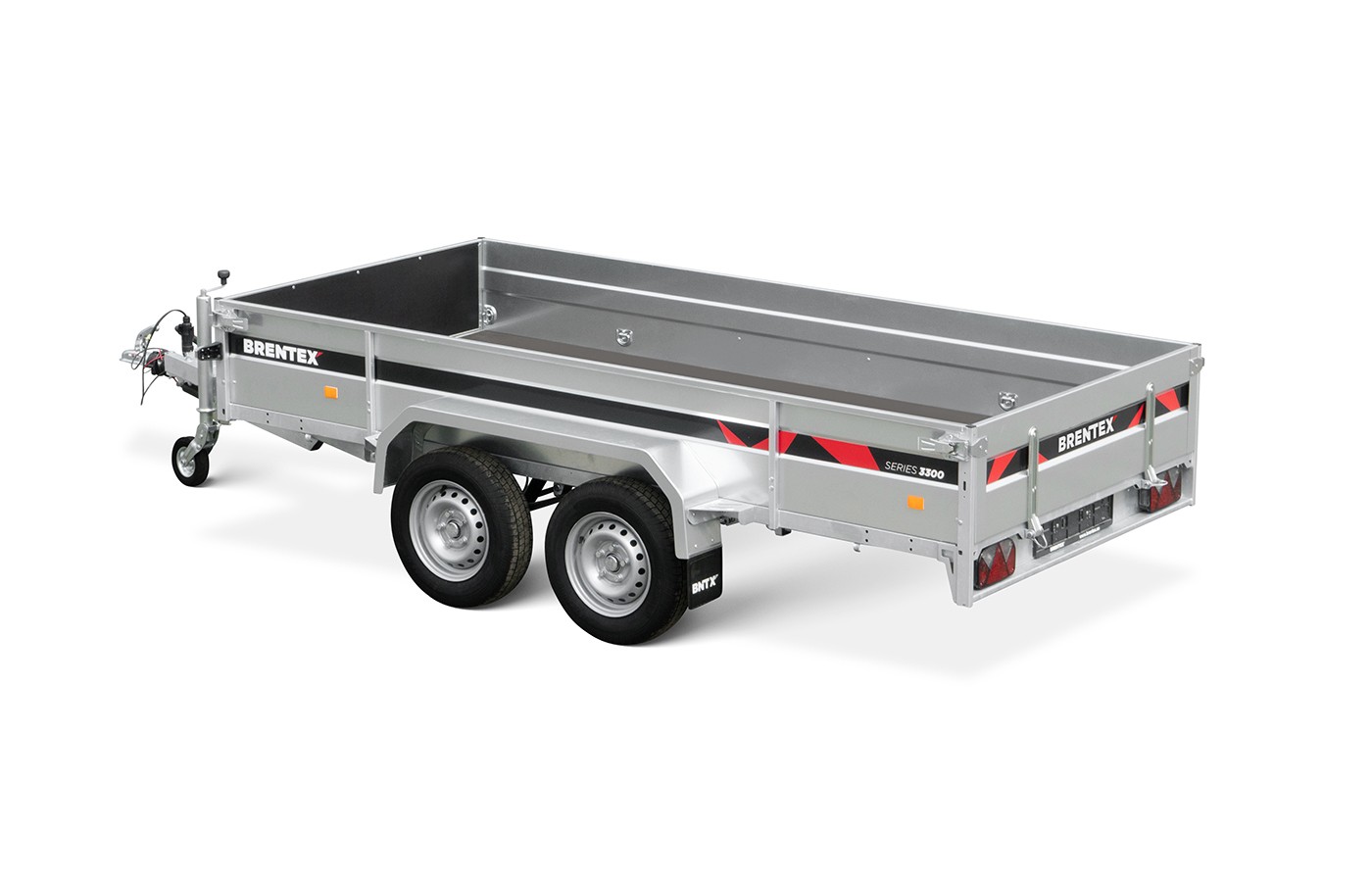 Piekabe ar bremzēm BREN-3315-2P-2400 uz pilnībā cinkota, metināta rāmja ar bremzēm ir izgatavota no izturīga S355 konstrukciju tērauda.