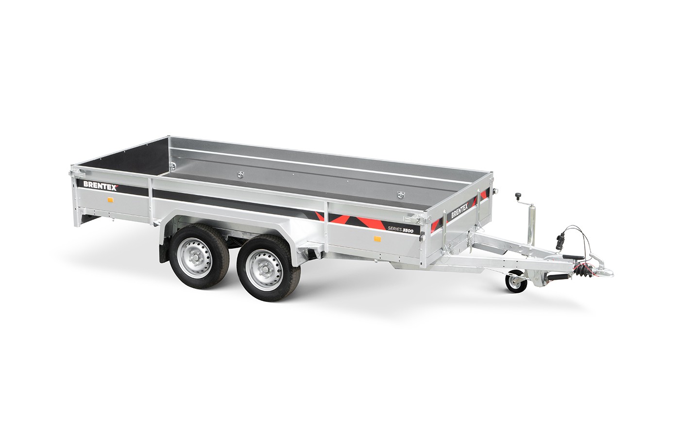 Piekabe ar bremzēm BREN-3515-2P-2100 uz pilnībā cinkota, metināta rāmja ar bremzēm ir izgatavota no izturīga S355 konstrukciju tērauda.