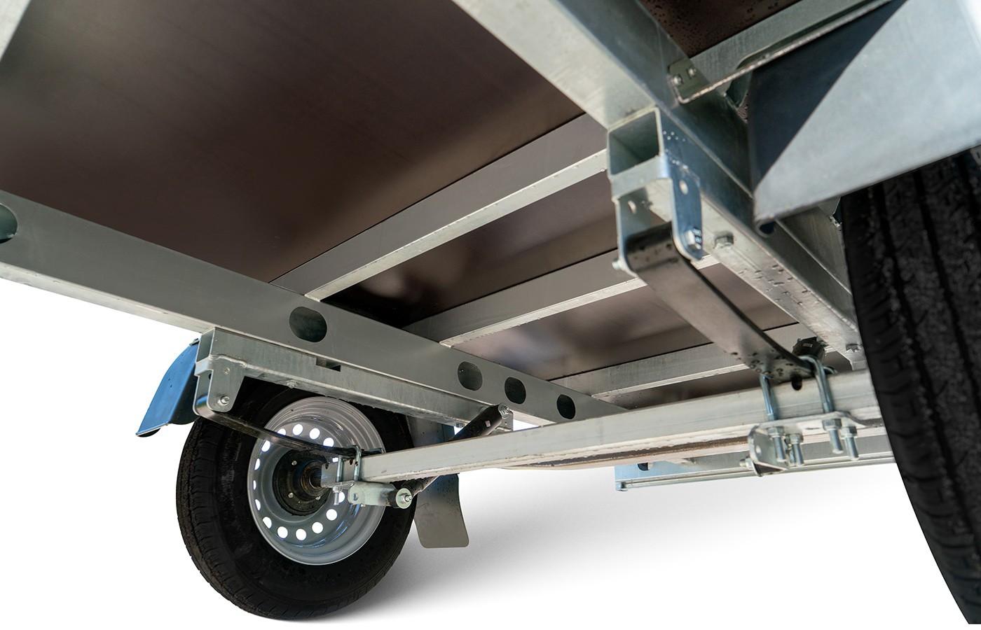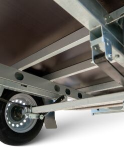 BREN-3015FB platformas piekabe ar lūkām uz karsti cinkota pilnībā metināta rāmja ir izgatavota no izturīga S355 konstrukciju tērauda.